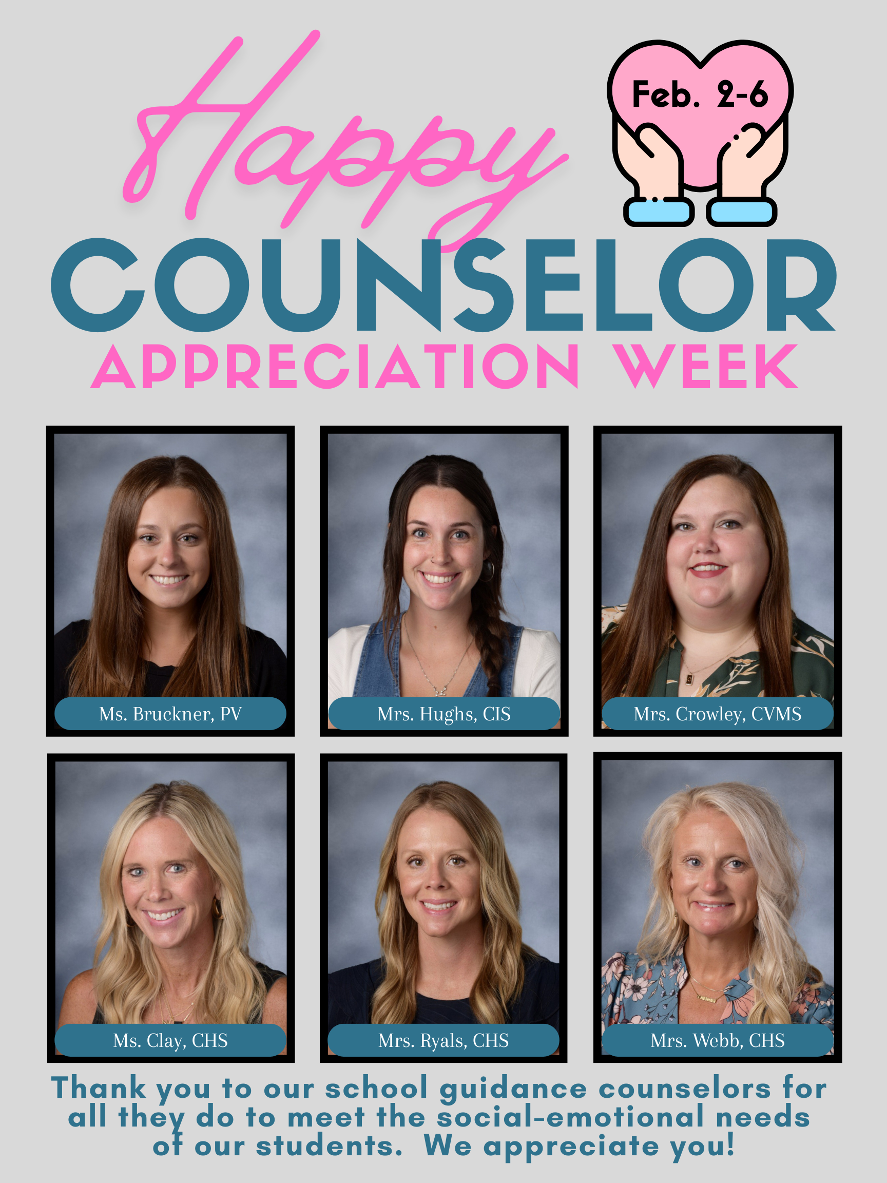 Please join us in showing our appreciation for Cameron R-1 Guidance Counselors during Counselor Appreciation Week! We appreciate our team and all they do to meet the needs of our students.